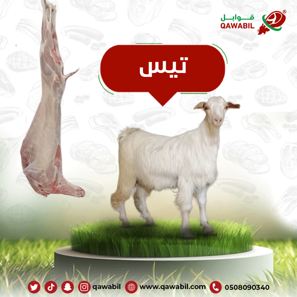 •يعد مذاق التيس سينقلك الى عالم اخر من الجمال. •وزن التيس مميز يتراوح من 8 كيلو حتى 8.9 كيلو ذلك مما يجعل اللحم أكثر.
